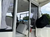 - Spacious fishing cockpit that doubles as dining area thanks to the port flip seat