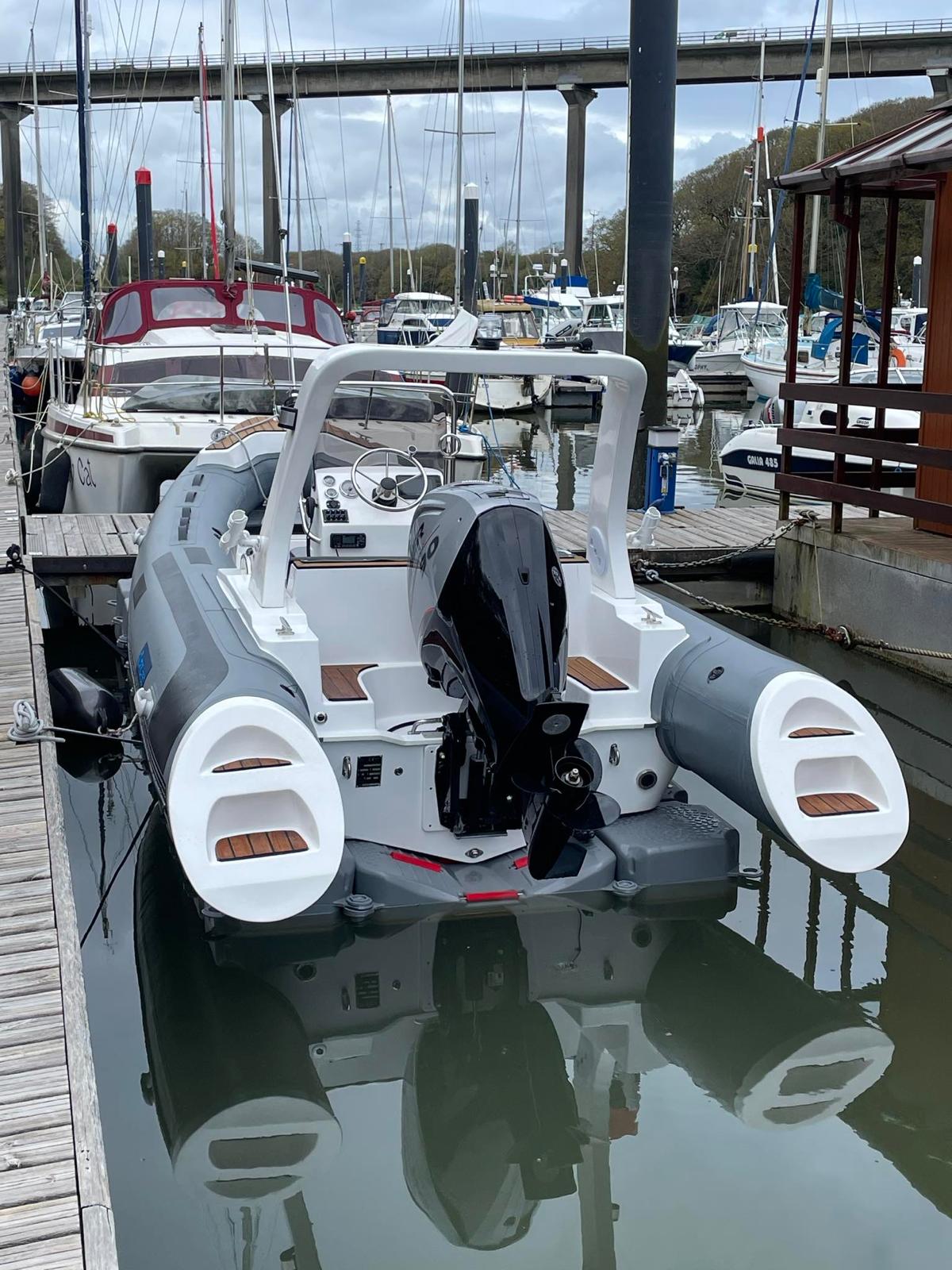 Our most popular RIB only 1 year old, docked on a dry dock and always covered. Newly serviced and winterised. She comes with bespoke Trailer, cover and Engine (Mariner 90) with 4 years left under warranty!.